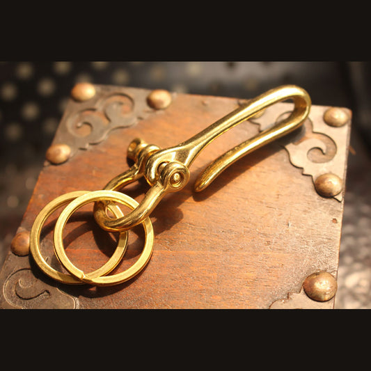 Retro Brass American Causal Style Fishhook Key Chain Keyring Shackle Split Ring