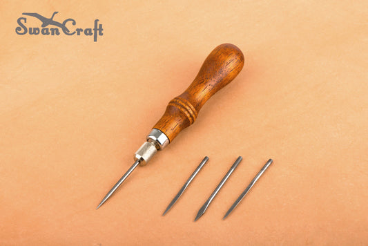 4in1 Awl(4 type) Wooden Handle Leather craft Stitching Tapered Sewing Tool