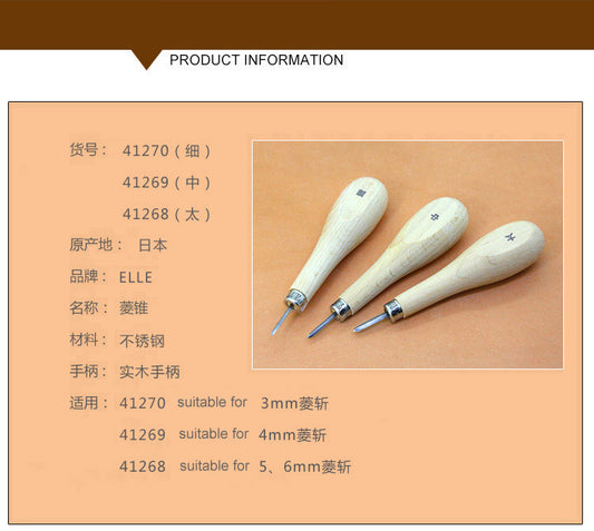 Japan Kyoshin Elle Leather Craft Sewing Kit Diamond Awl DIY Tool wooden handle