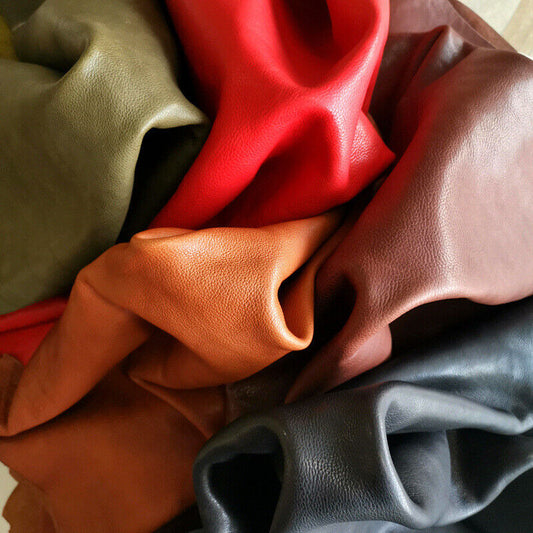 Buntes fettiges, pflanzlich gegerbtes Rindsleder, Bastelmaterial im Buttero-Stil