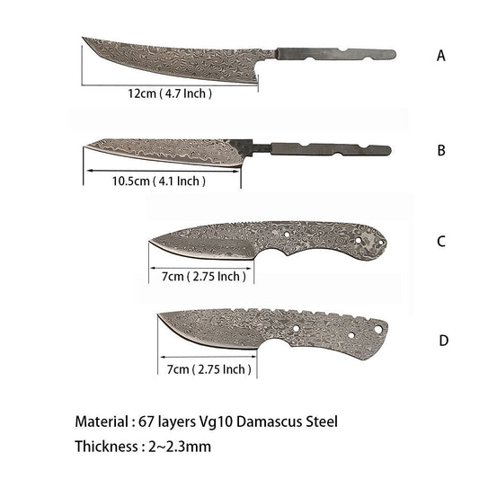 Cuchillo de cocina para frutas, hoja en blanco para exteriores, herramienta de bricolaje para el hogar, pasatiempo, acero de Damasco Vg10