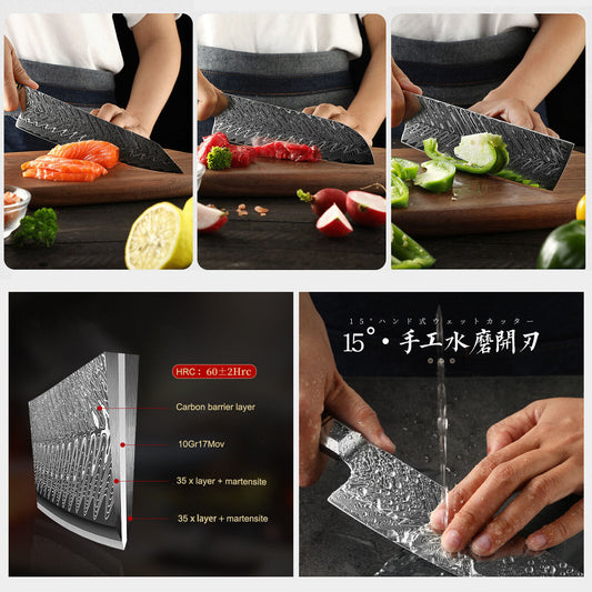 Cuchillo de cocina Santoku de acero de Damasco, mango de resina Nakiri, japonés, para chef Kiritsuke