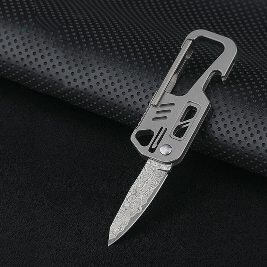 Abridor de botellas con llavero de aleación de titanio multifuncional y cuchillo de Damasco portátil