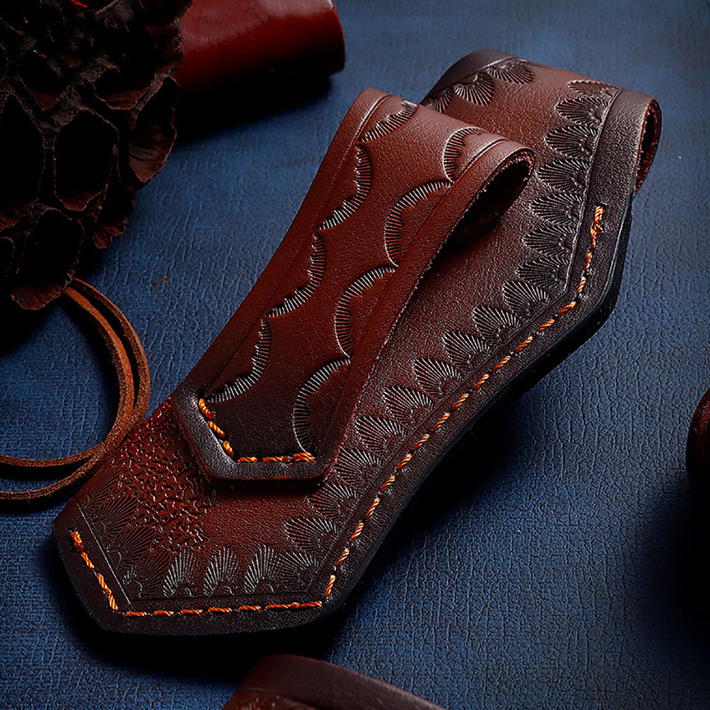 Hand Made Carved Genuine Leather Sheath For Folding Knife Cover Pouch Belt Clip